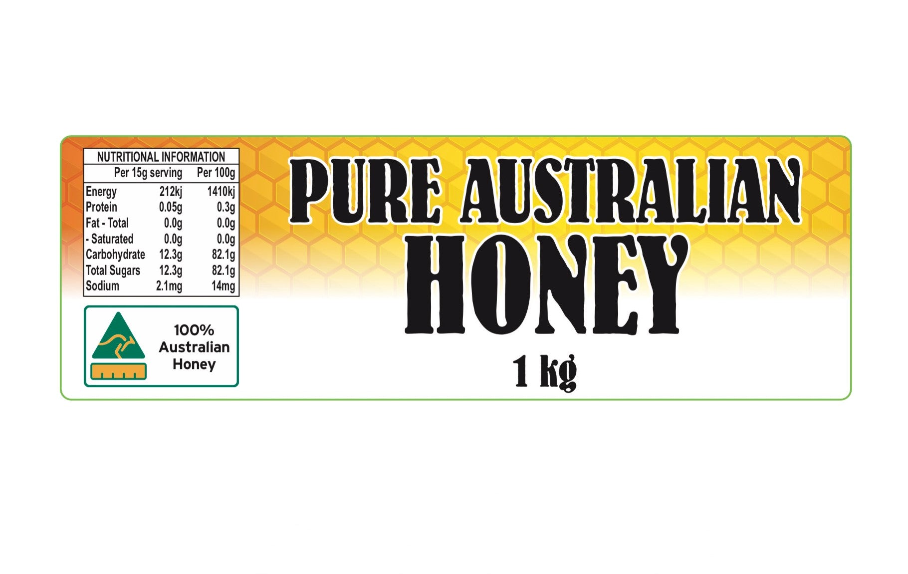 Contains the net of 1kg and has “Pure Australian Honey” written on it.