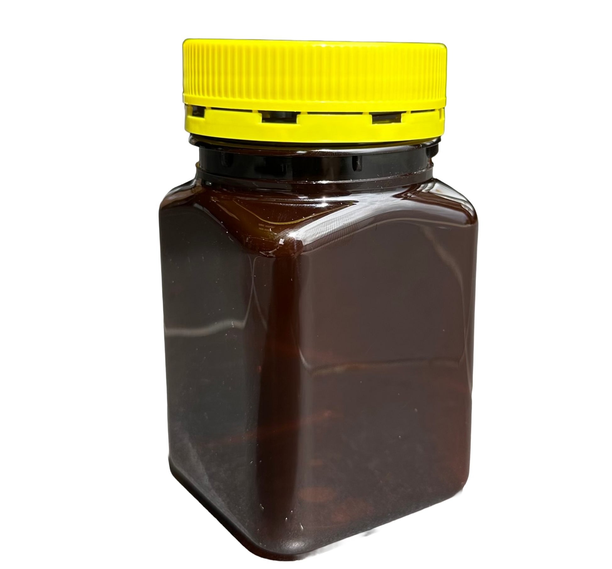 500g AMBER Square Jar & tamper evident yellow lid.