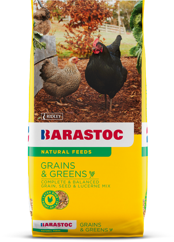 Ensure that Barastoc Grains and Greens makes up the majority of the hens daily feed to ensure a balanced diet. Other feeds such as green scraps, pasture and hay may be fed, but only in small amounts.