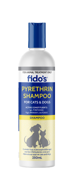 Fido's Pyrethrin Shampoo 250ml is a gentle and effective shampoo designed to help control fleas and ticks on your pet. Its pyrethrin-based formula cleans your pet’s coat while providing protection against pests. Easy to use and suitable for regular grooming, it helps keep your pet comfortable and healthy.