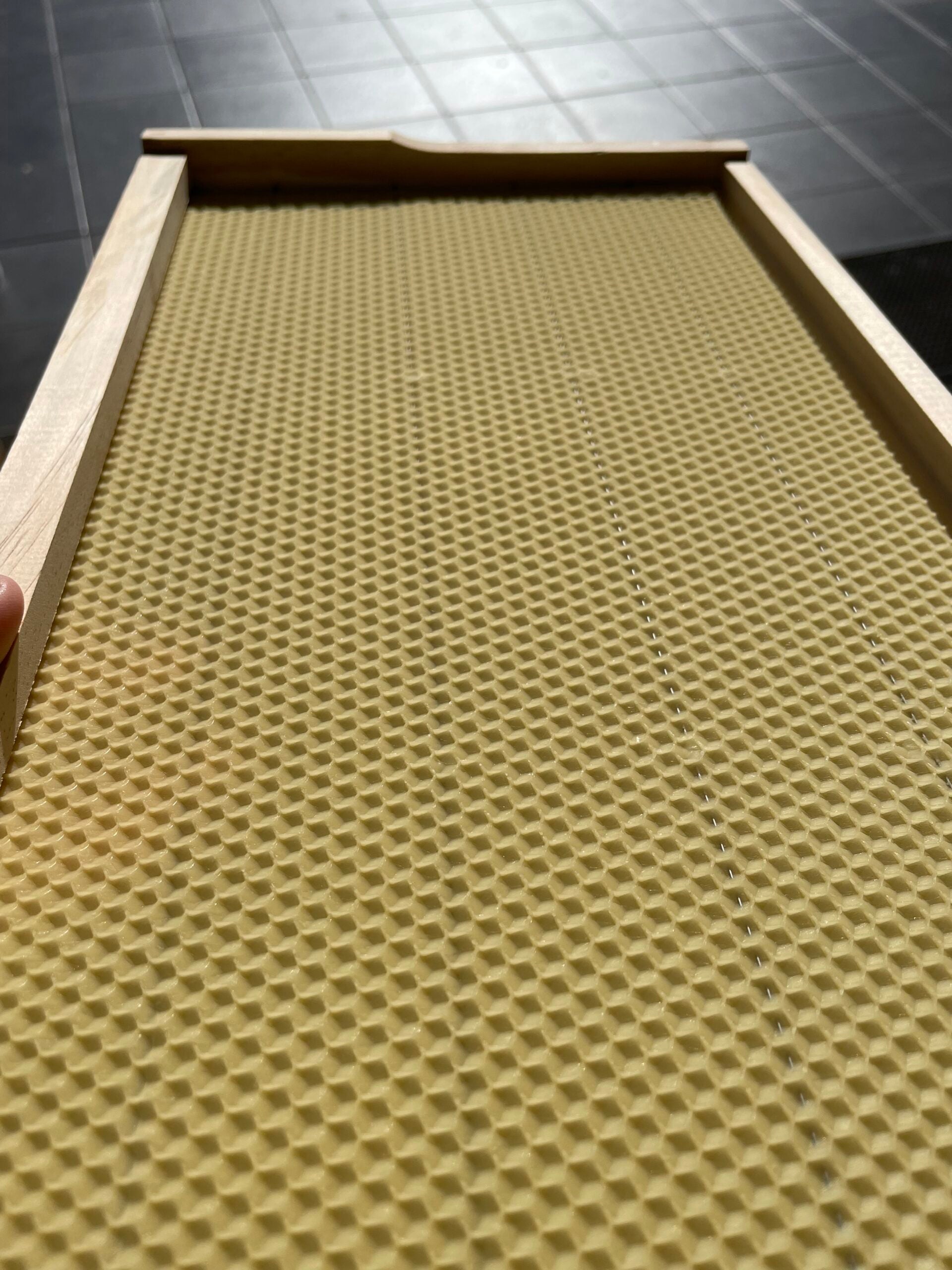 Frames are used in a beehive to make and store honey. As well as help start production for the queen bee to reproduce.