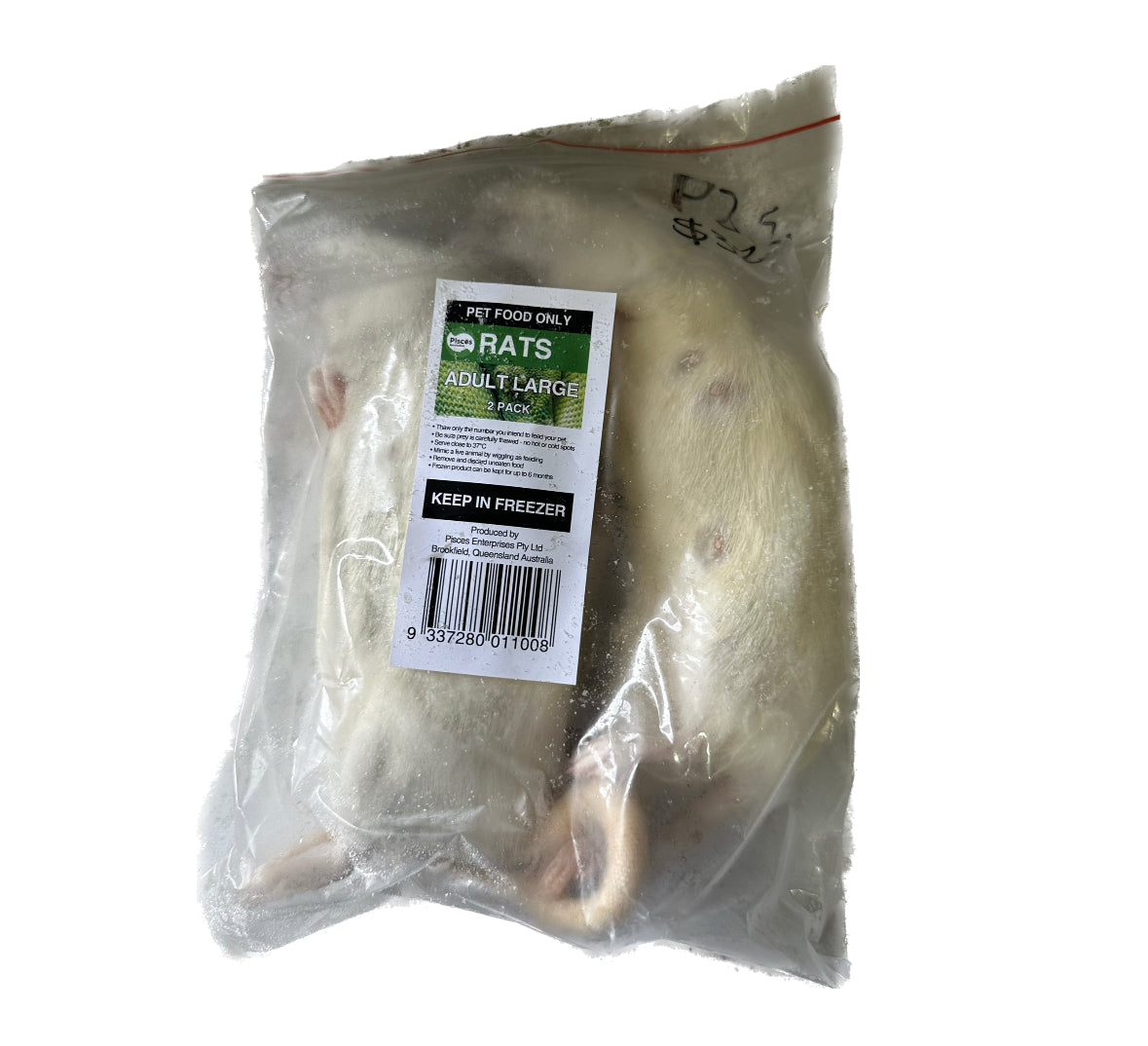 Frozen Adult Rats L - 2 Pack provides a convenient and nutritious food option for your snake. These large frozen rats are ready to feed, helping to support your snake’s health and growth with a natural diet. Perfect for reptile owners seeking an easy and reliable feeding solution.