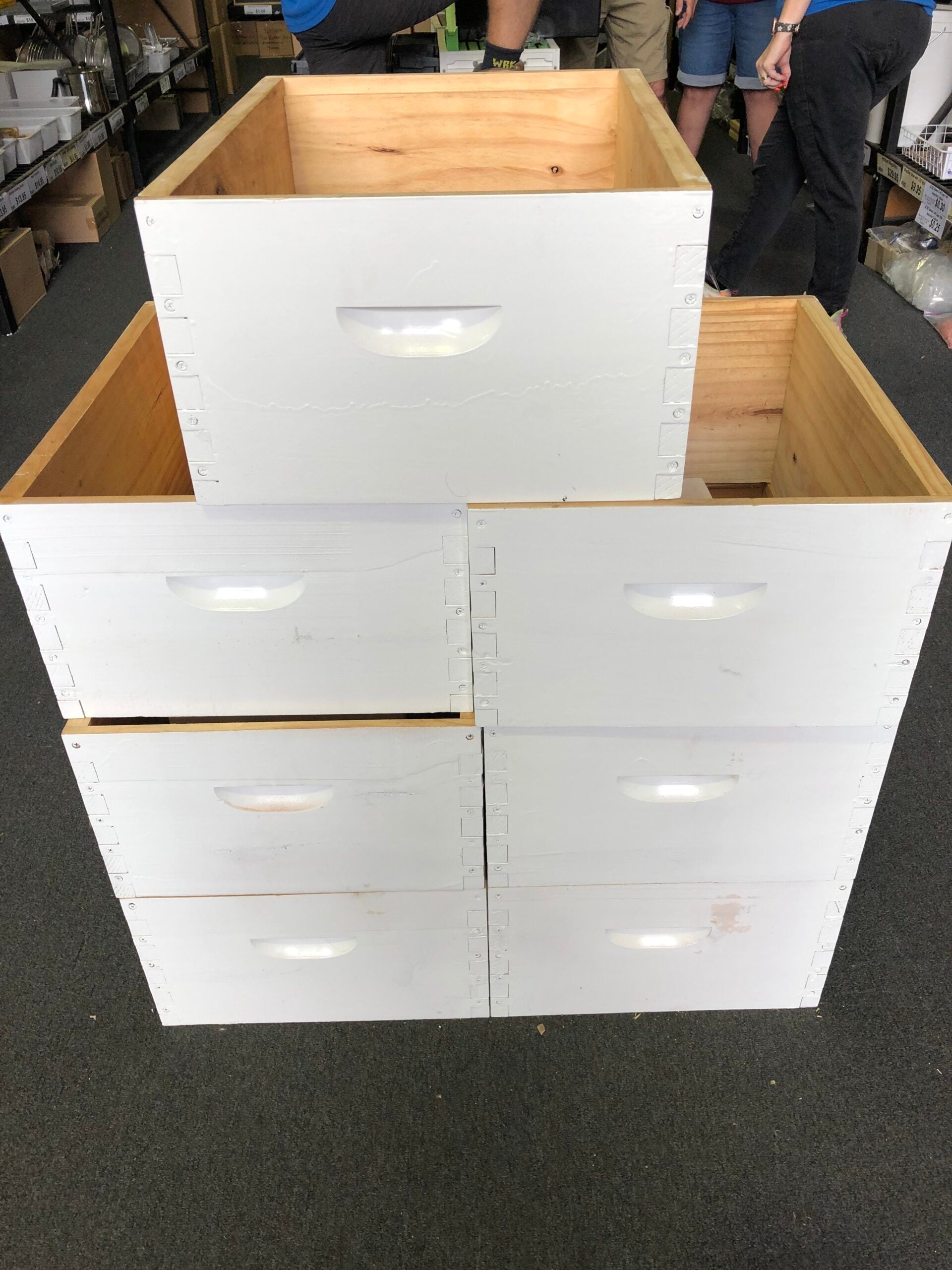 Generally you have two honey supers per hive. This give a place for the bees to collect and store honey.