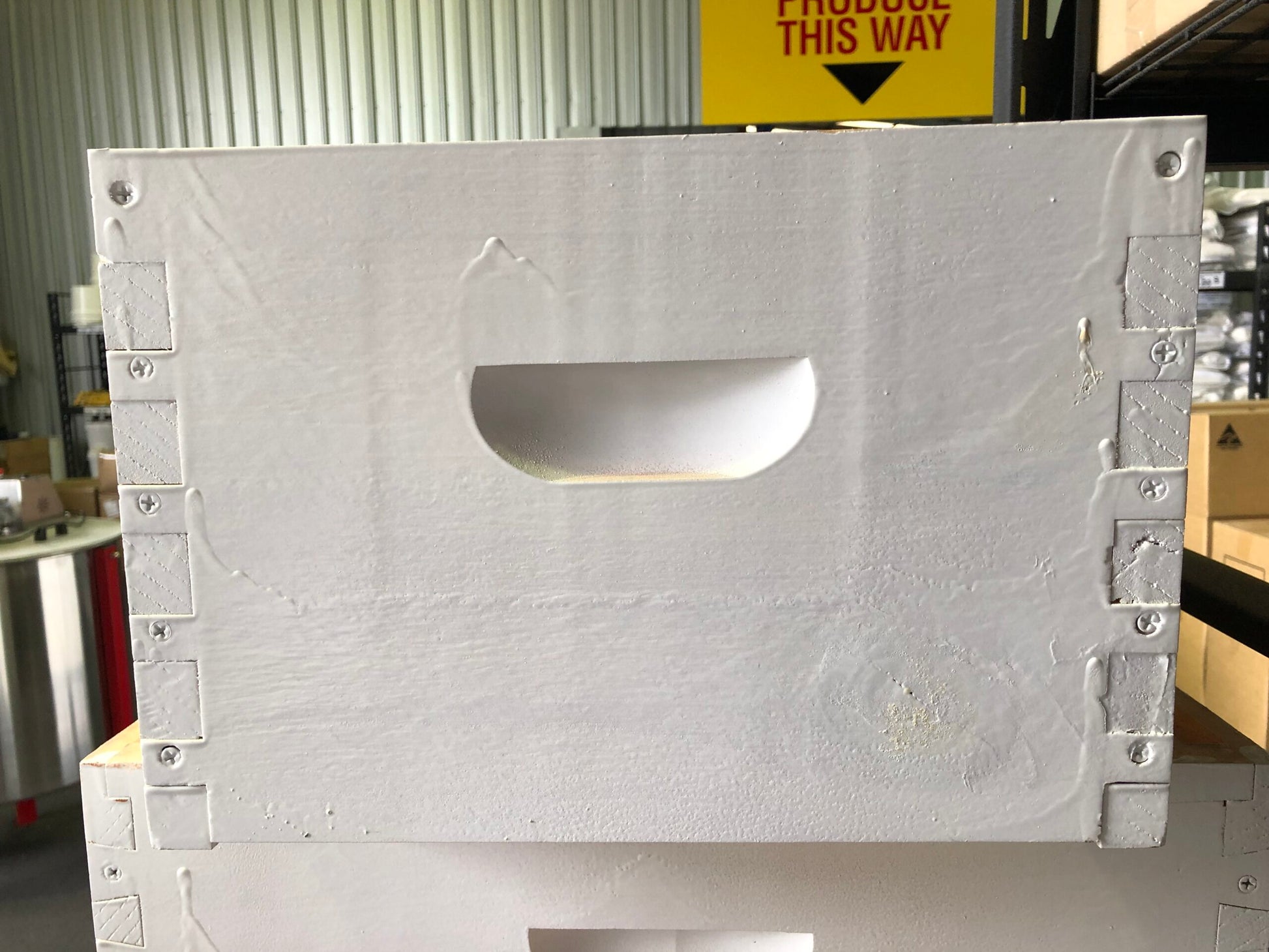 A honey super is a box that is placed on top of the brood box for the bees to put honey in.
