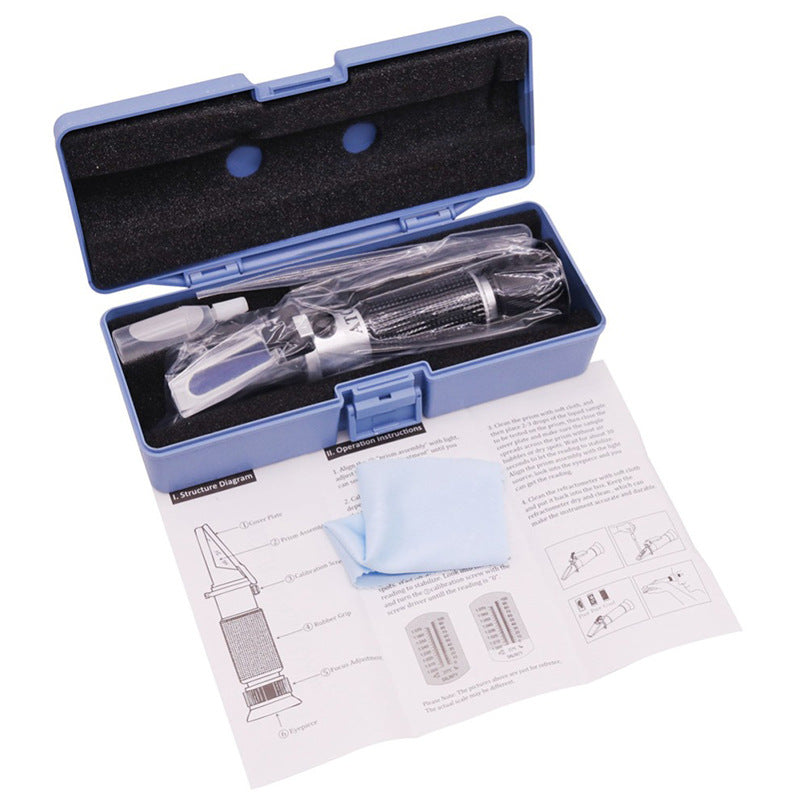 – When finished, clean the refractometer, and put away in its box. Be careful with the prism as any scratches can impair or interfere with the readings.