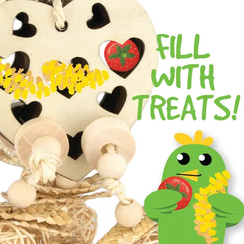 The Natural Foraging Heart bird toy encourages your bird to explore and stay active by mimicking natural foraging behavior. Made from safe, natural materials, it provides mental stimulation and helps prevent boredom. Its heart shape adds a charming touch to your bird’s environment while promoting healthy play. Perfect for keeping your feathered friend entertained and engaged.