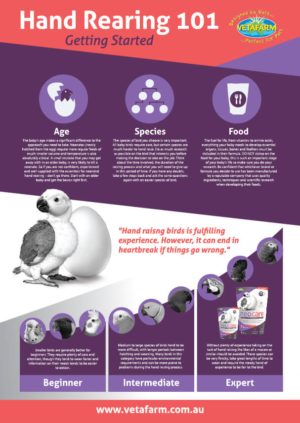 Neocare is Vetafarm's most advanced hand-rearing formula. It was formulated by avian veterinarians to provide optimal nutrition, growth and development for all species of baby birds.