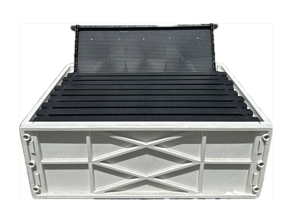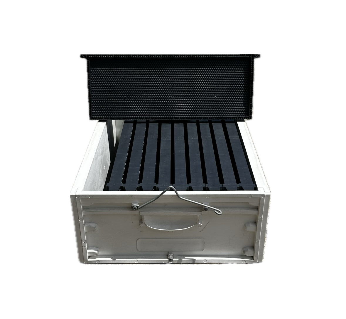 The Nuplas 10 Frame 3/4 Super with Frames is a practical beekeeping box designed to hold 10 frames, perfect for expanding your hive. Made from durable materials, it provides a sturdy and lightweight structure that helps your bees build honeycomb efficiently. This super comes complete with frames, making it easy to add to your existing hive setup and start collecting honey or brood right away. Good way to overwinter your hive.