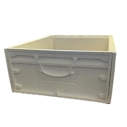 A honey super is a box that is placed on top of the brood box for the bees to put honey in.
