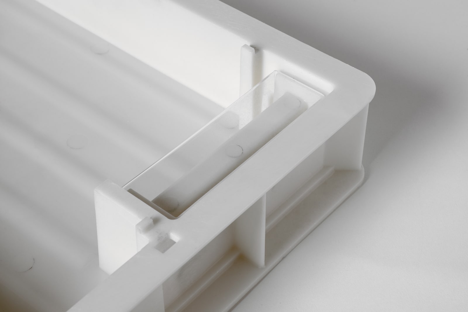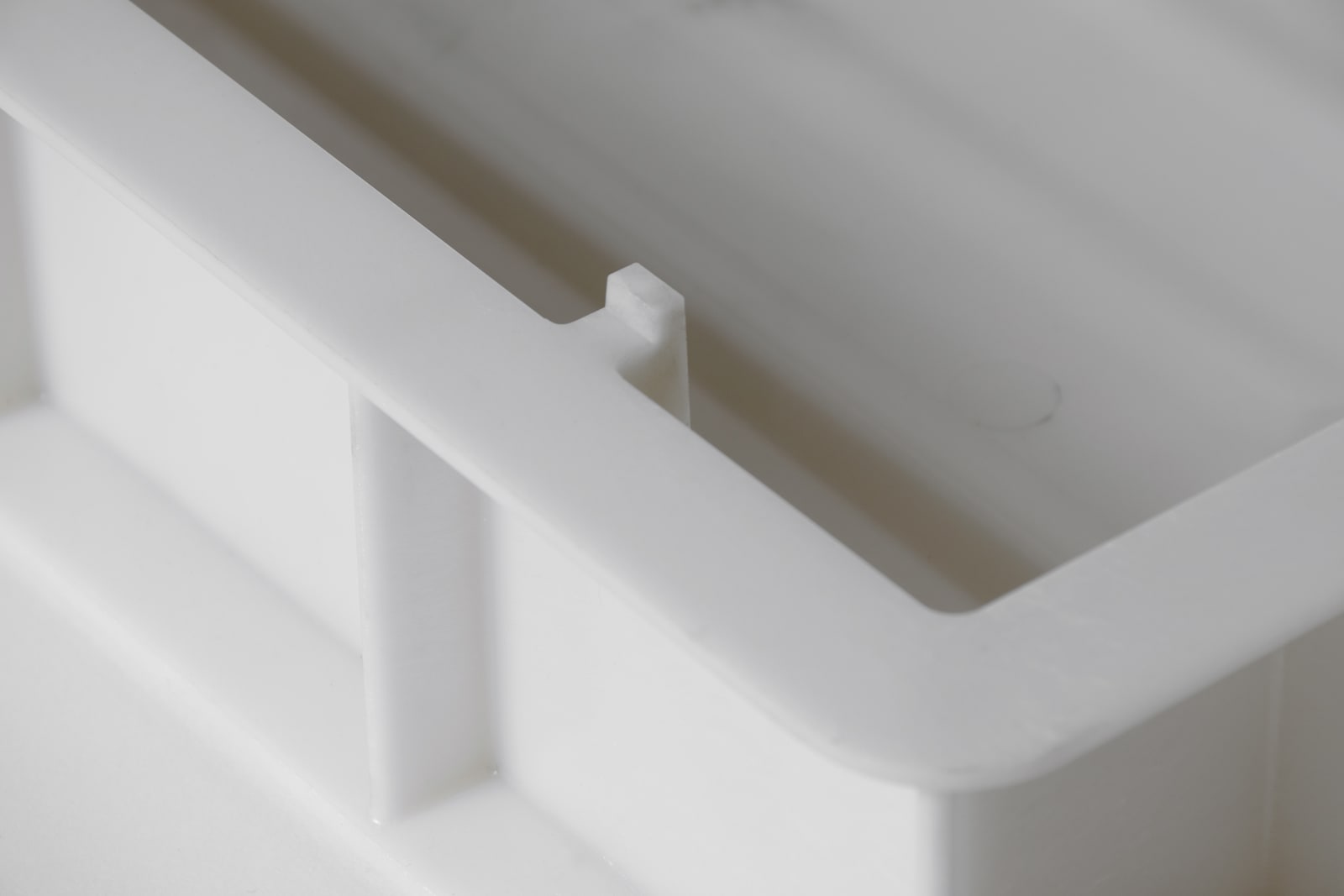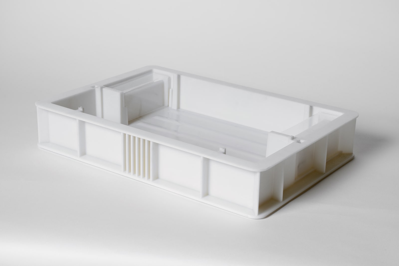 It is white in colour and holds 5L (8 frame) or 7L (10 frame).
