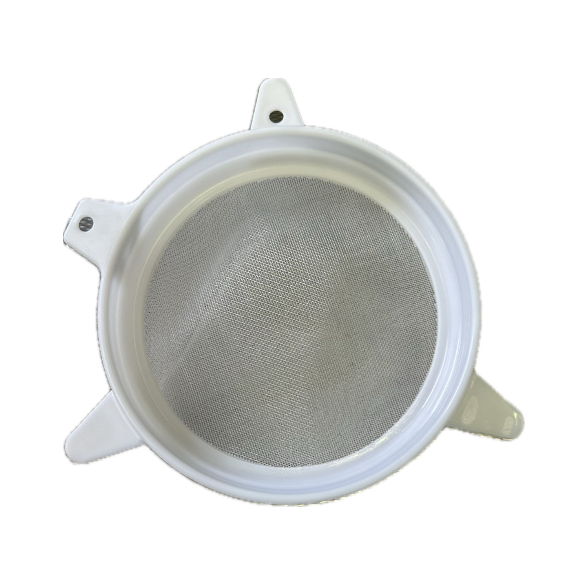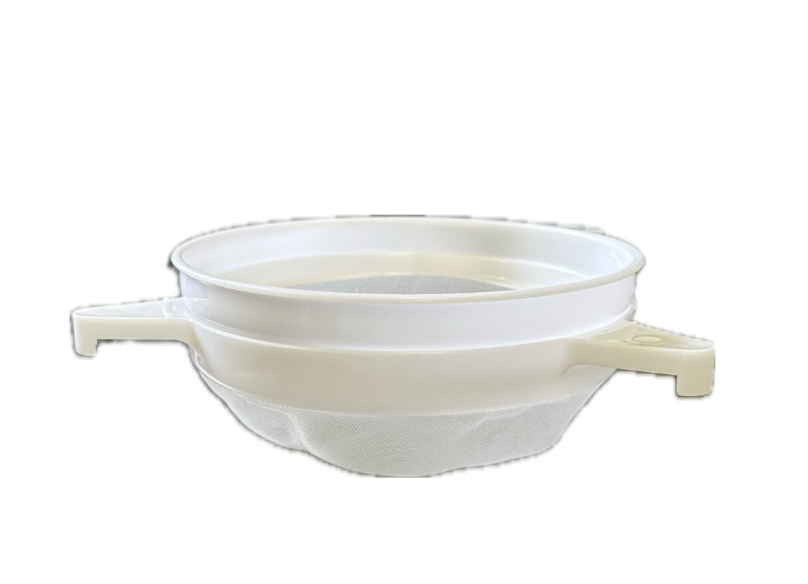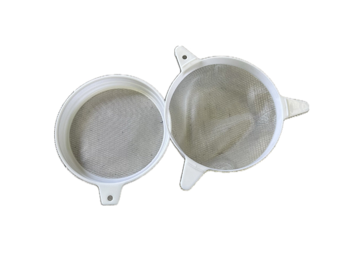 Removes all impurities (wax, dirt, dead bees, bark, etc) from the honey.