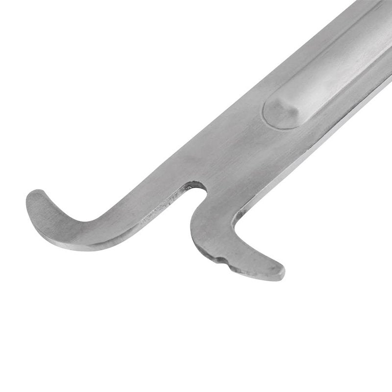 The hook end slides smoothly under the frame’s top bar, providing better leverage for lifting without causing damage to the frames.