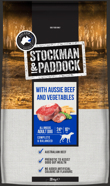 Stockman & Paddock Aussie Beef & Vegetables is made with real Australian beef and is an excellent option for family dogs.