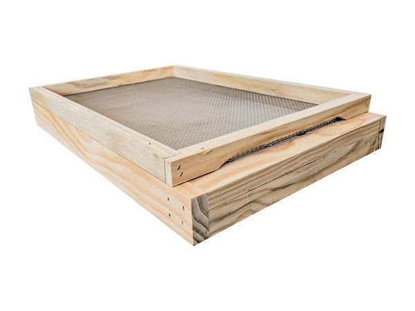 It includes a removeable tray to help trap and kill small hive beetle and varroa mite.