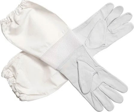 Beekeeping gloves are ventilated and made out of sheepskin and polyester cotton. These gloves are elbow length. They are designed to help you get less stings when out in the field.